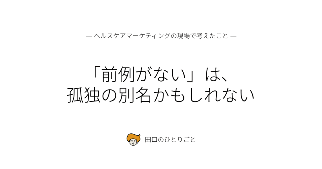 前例がないということは、正解かどうか誰にも確認できないまま進むしかないということです。