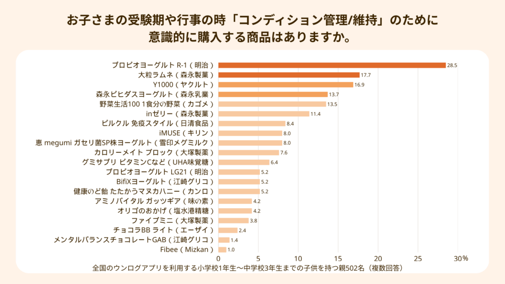また、高額な成長系サプリメント(月額数千円〜)については、「短期間で効果が可視化されにくい」「価格が高く継続できない」という理由で離脱するケースが見られました。 対照的に、日常的に定着しているのは「鉄とカルシウム入りのグミ」「魚肉ソーセージ」「ミロ」「美酢(ミチョ)の牛乳割り」といった、子どもが自ら喜んで食べる“おいしい機能性食品”です。これらは「お菓子やジュースの延長」として子どもが喜んで摂取するため、親の管理コストがかかりません。また、野菜嫌いの子どものために、ハンバーグやカレーに野菜を細かく刻んで隠すといった調理の手間を省く食品へのニーズも高く、親たちは「手抜き」ではなく「合理的な投資」として、これらの商品を求めています。
