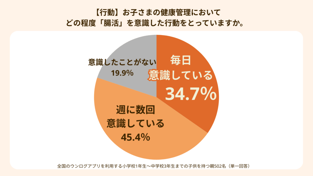 これらの結果から、親にとって腸活は特別な健康法ではなく、「わざわざ行うもの」ではない、生活の一部として自然に実践される習慣として定着していることがうかがえます。