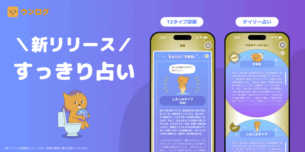 おなじみの腸活アプリ『ウンログ』のキャラクター『ウンログくん』が、12星座それぞれの個性を反映した姿で新登場しました。親しみやすいキャラクターと共に自身の便(便質)に向き合うことで、観便をより身近で楽しい体験へとアップデートします 。