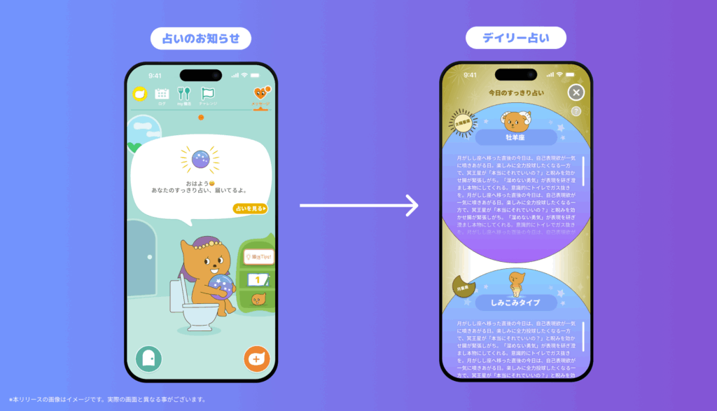 「すっきり占い」は、医学的な「正論」だけでは定着しにくい「観便(便を観察すること)」という習慣を、日常のエンターテインメントである「占い」を通じて、無理なく生活に取り入れてもらうことを目的とした新コンテンツです。