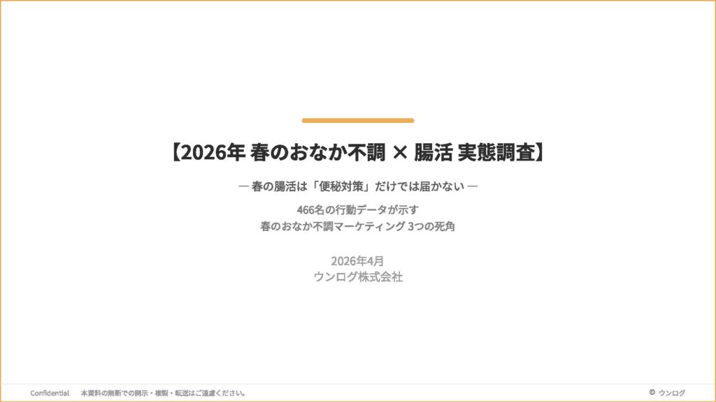 ✔ なぜ「便秘訴求」だけでは生活者に届かないのか ✔ 腸活が「ヨーグルトだけ」で完結してしまう理由 ✔ 春のおなか不調がそもそも自覚されにくい構造